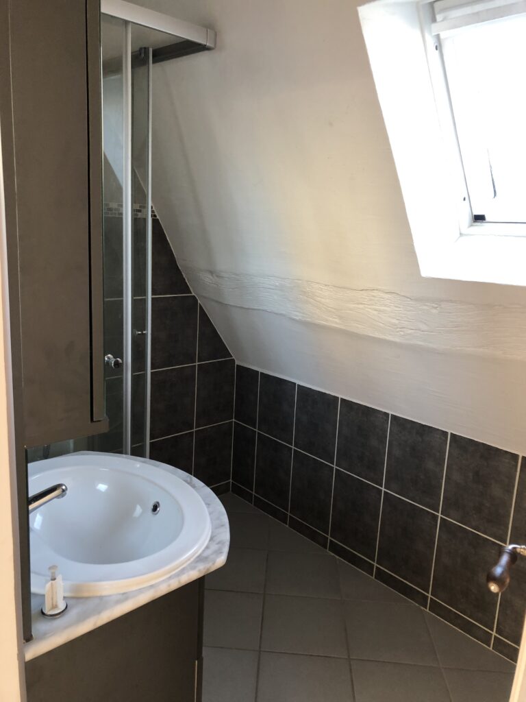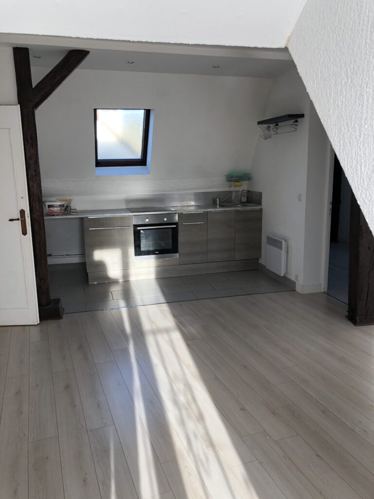 ENTRE CENTRE VILLE ET GARE SNCF un appartement de type F3 comprenant : Une entrée avec rangement, un séjour avec cuisine ouverte, 2 chambres, un bureau, une salle d’eau, WC, un stationnement.