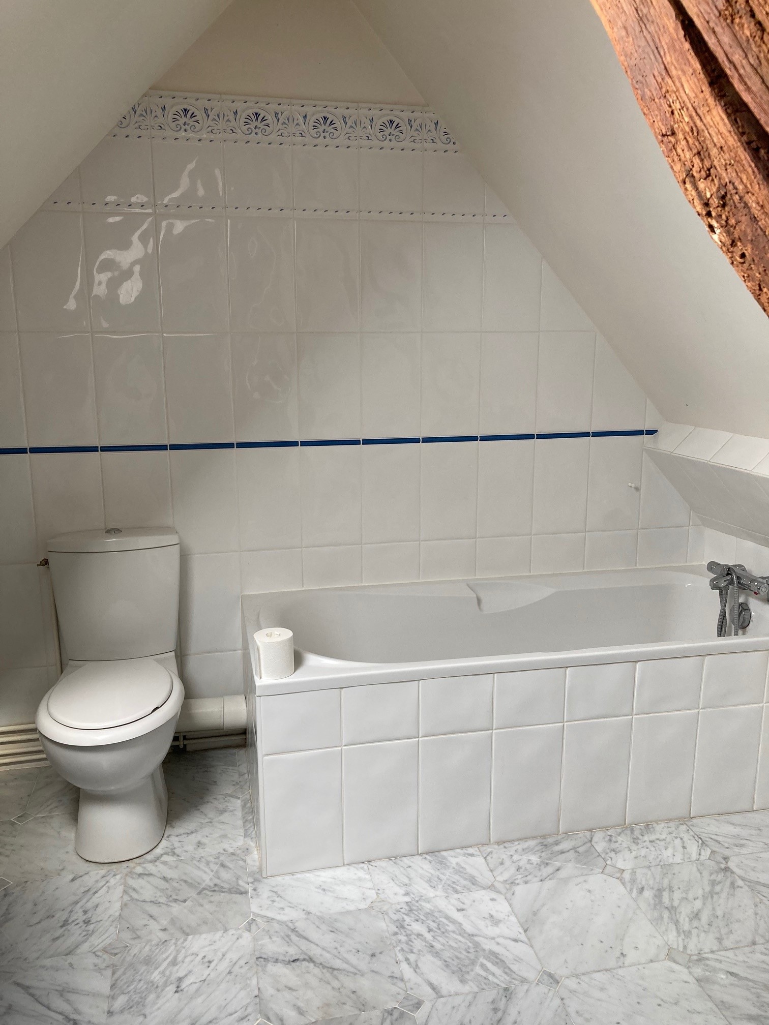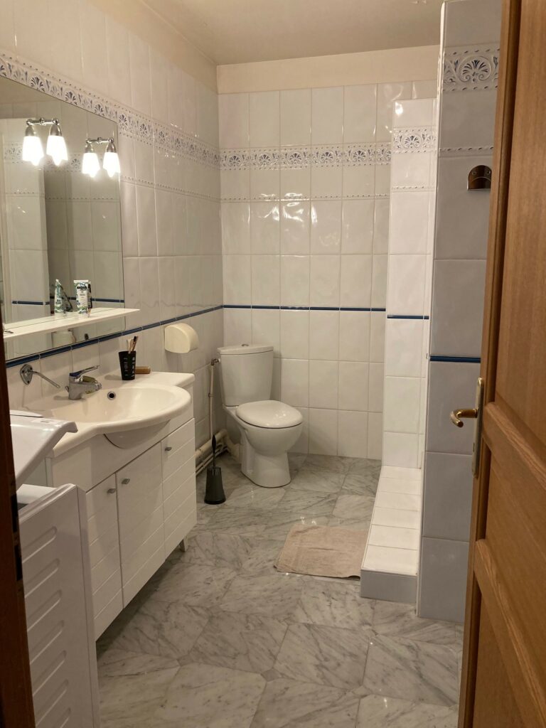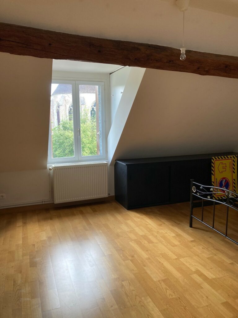 À l’étage, une très grande chambre avec salle de bain et WC.