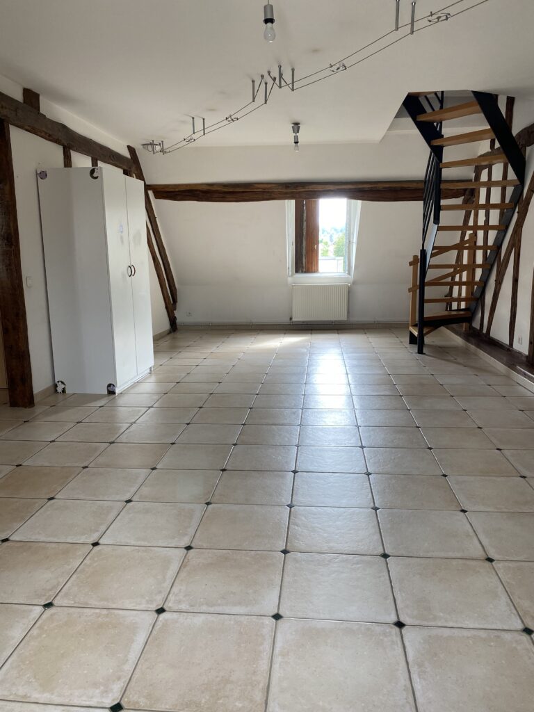 TRES BEAUX VOLUMES pour cet appartement de type F5 en DUPLEX comprenant : Une cuisine aménagée, un vaste séjour, 3 grandes chambres, une salle d’eau avec WC.
