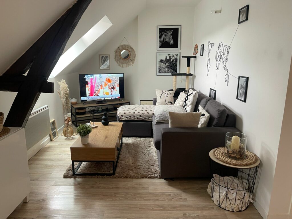 A 1 MINUTE DE LA GARE SNCF -Un appartement de type F2 comprenant : une entrée; un séjour avec cuisine ouverte, une chambre, une salle d’eau avec WC.
